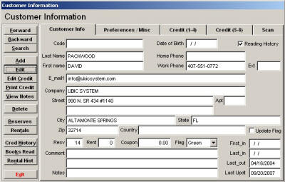 In addition to mailing information, UBIC tracks credit history, reading history, personal preferences, books on reserve/rent, and coupon incentive total.