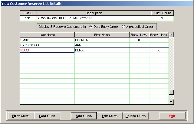Customer Reserve Lists
